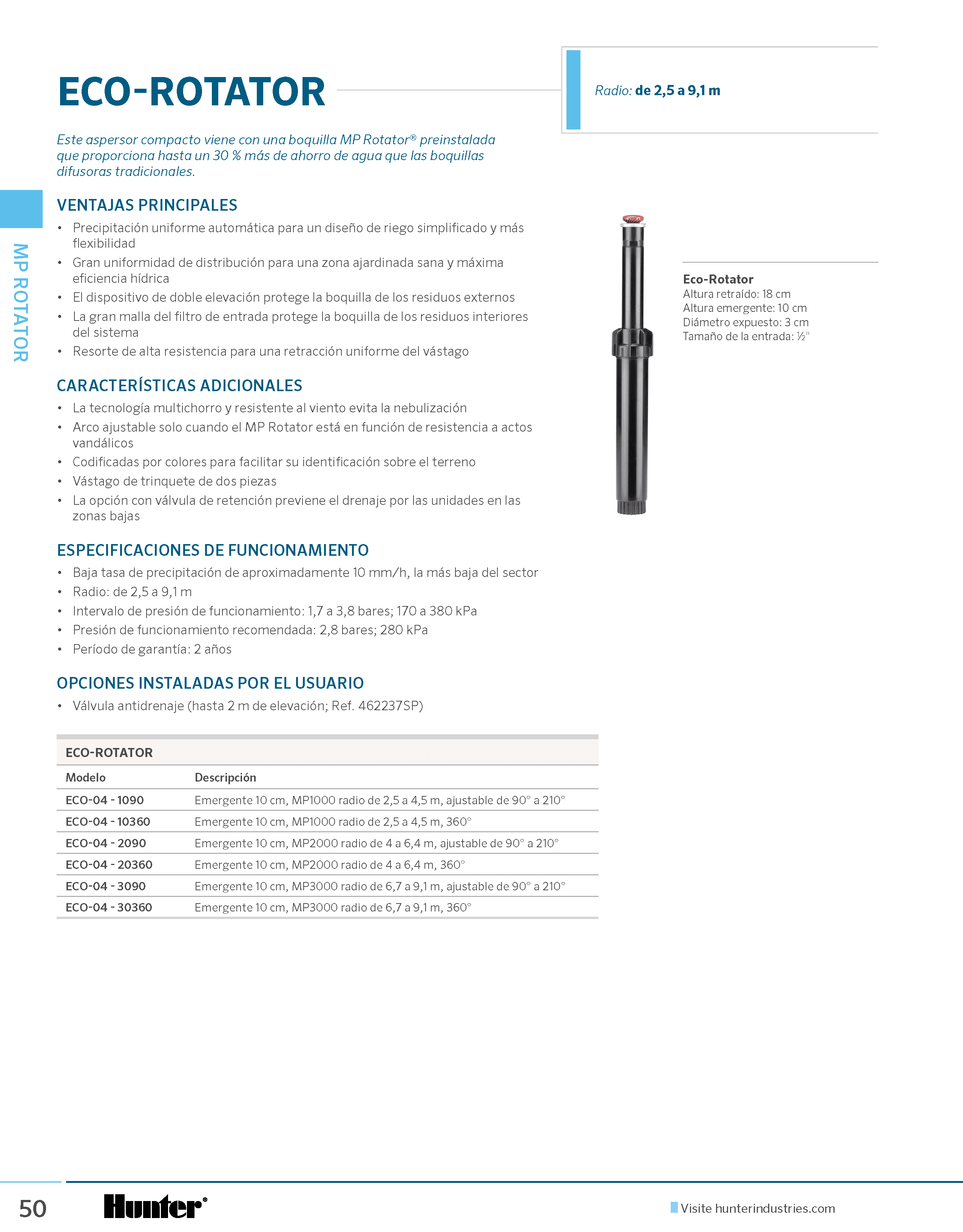 El aspersor ecológico y económico que minimiza el uso de agua y el tiempo de instalación, así como maximiza la eficacia, la flexibilidad y el rendimiento.